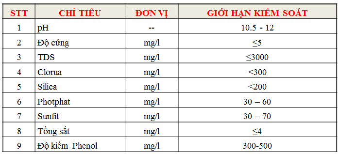 - TDS nước lò >3000 mg/l