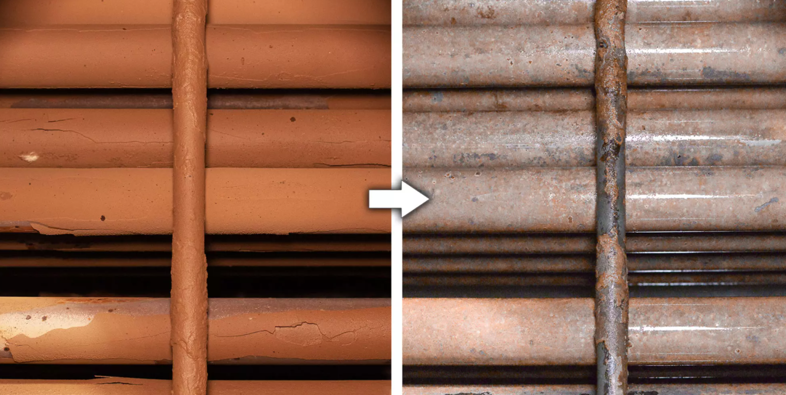 Hình ảnh: Đường ống trước và sau khi sử dụng Rydlyme