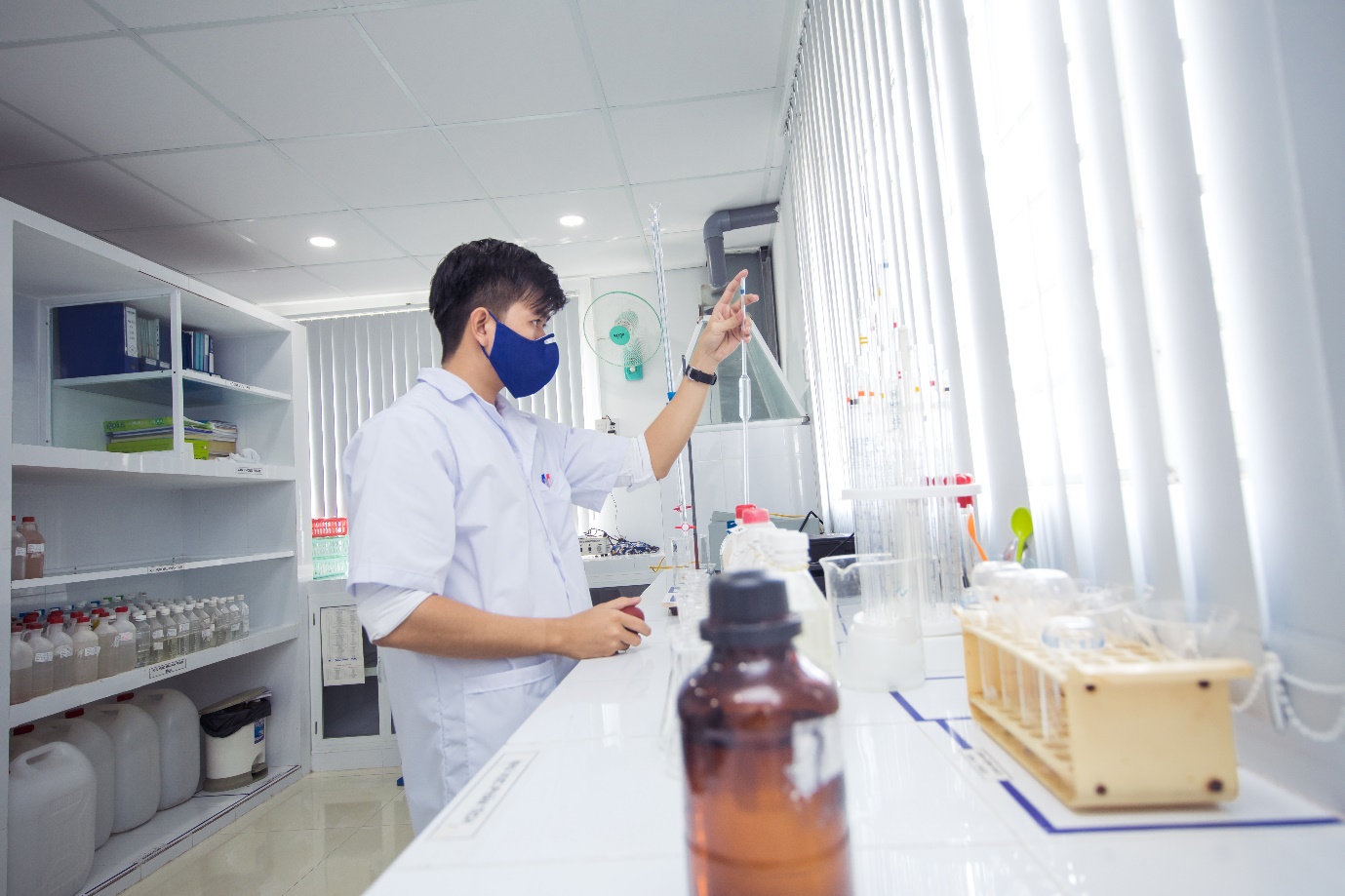 Hình ảnh: Một góc phòng thí nghiệm – Nhân viên đang kiểm tra mẫu nước l
